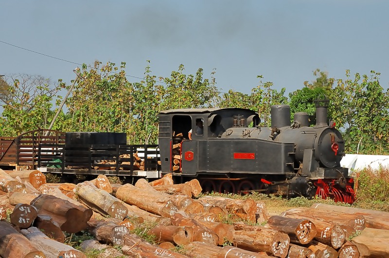 チーク材を乱伐してしまい、訪問時点では伐採中止で、鉄道も運休状態です。森林管理部門は、過去に伐採し