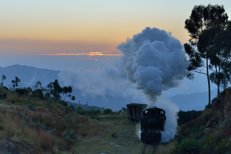 朝3時起きして、日の出の撮影に向かいます。Asmara駅4時に推進運転の列車で撮影ポイントに