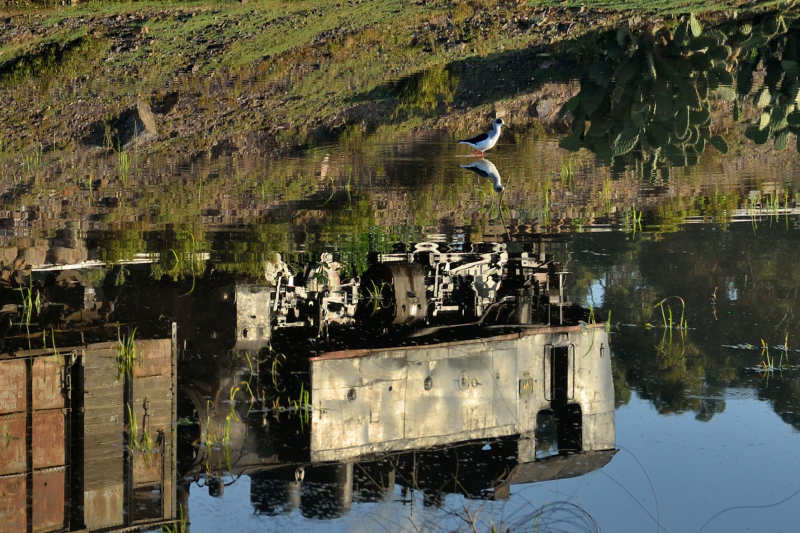 水鳥と逆さ機関車