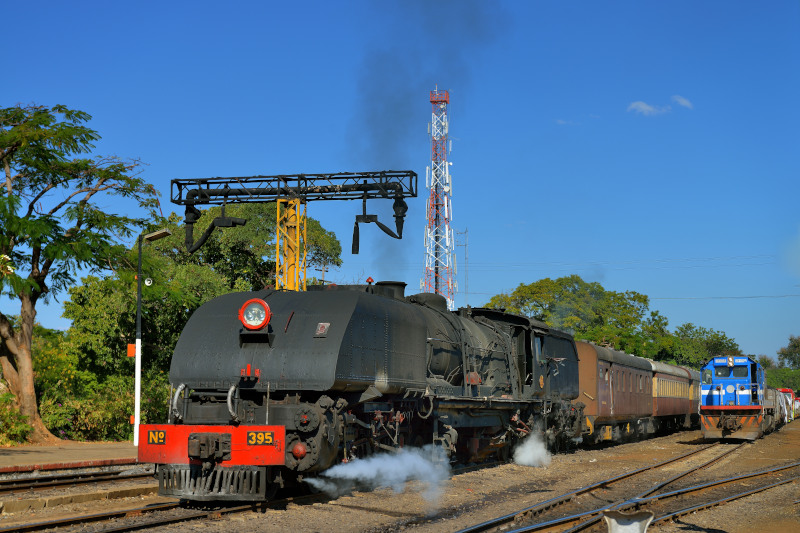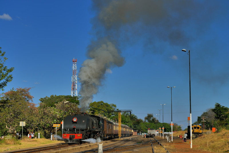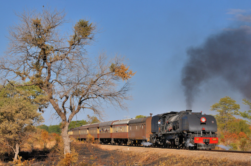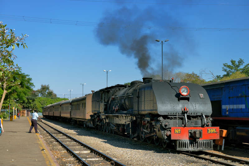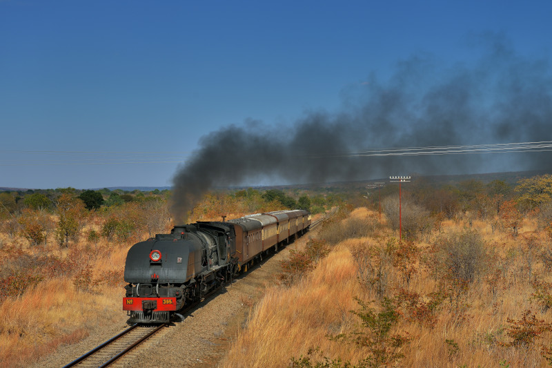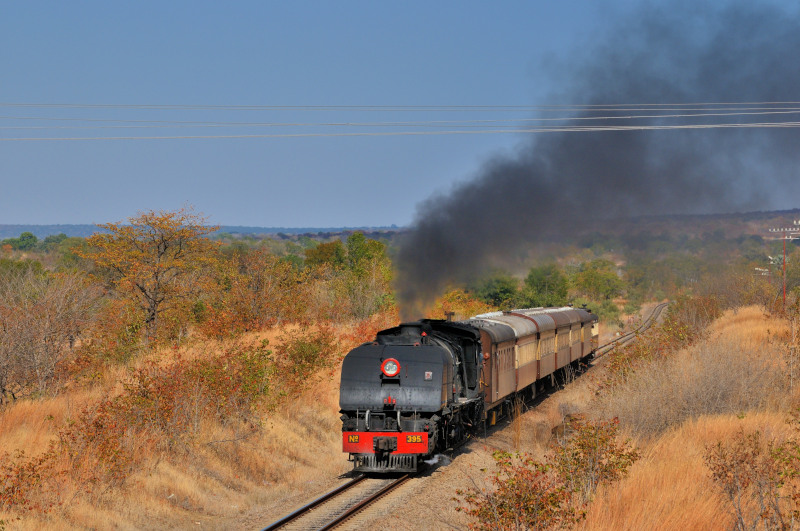 Victoria Falls付近です。 395号機(ガーラット15A)の客レ編成です。