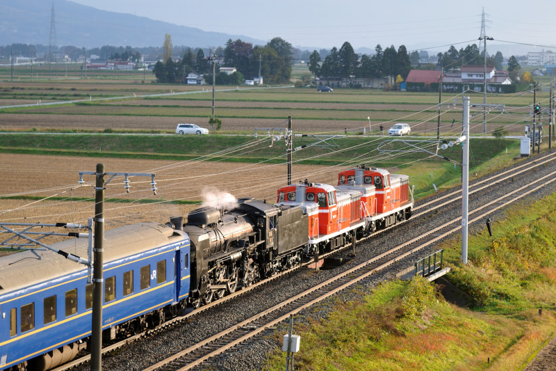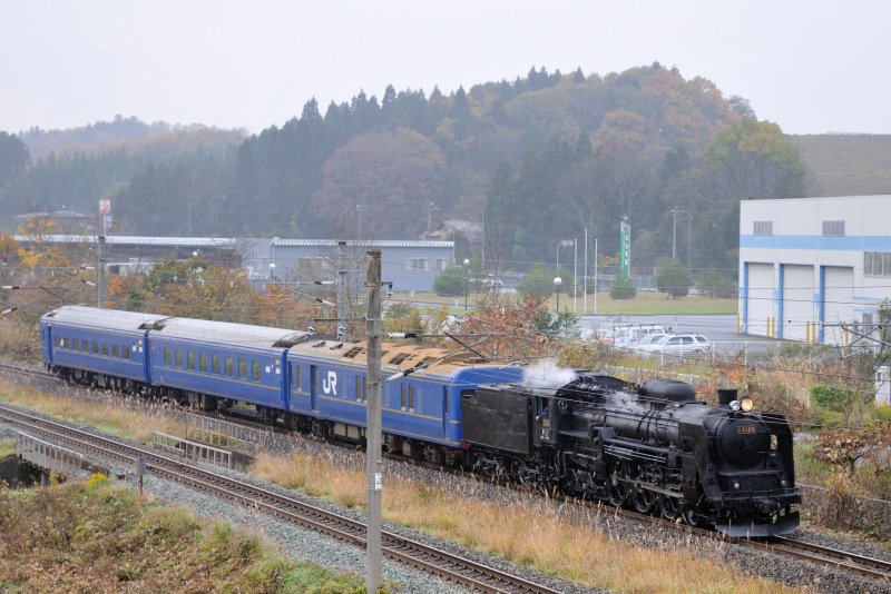 2011年11月13日に撮影。一ノ関〜北上間にC61牽引によるイベント列車「SLがんばろう