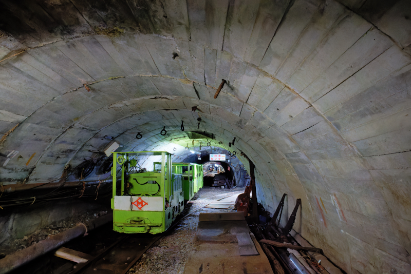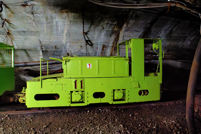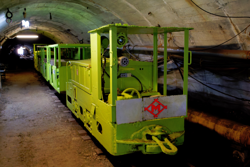 了とのこと。この見学ツアーでは炭鉱で活動したバッテリーロコ牽引による列車に乗車して坑道に入る。