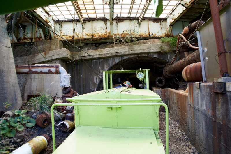 斜坑。鉱車をロープで曳きながら石炭を搬出したのだろう。反対側には斜坑が海面下まで続いていたのだ