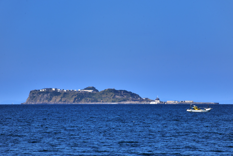 バスで約75分、船に乗換て約30分で到着する。島全体が炭鉱跡で、かつては7000人以上の人口があっ