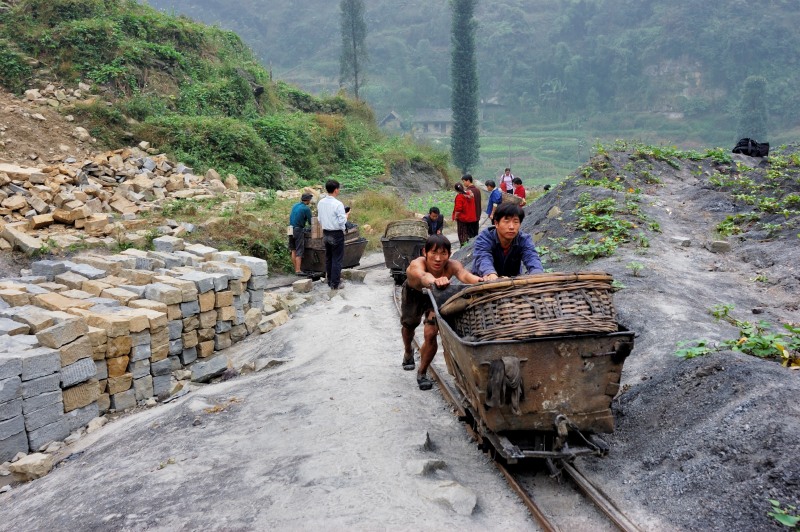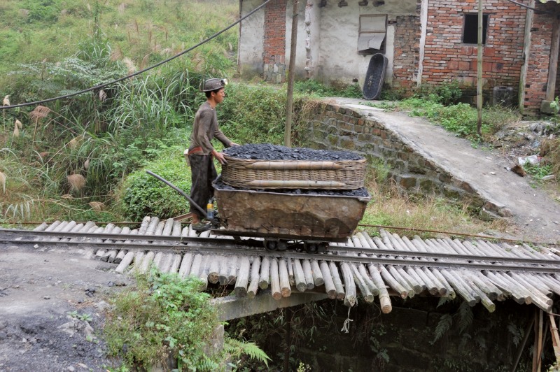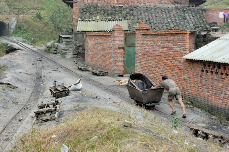 終点の黄村井駅の近傍にある小さな炭鉱の坑口。鉄道の案内によると、始発駅と思える石渓駅は終