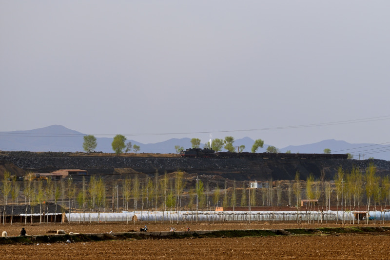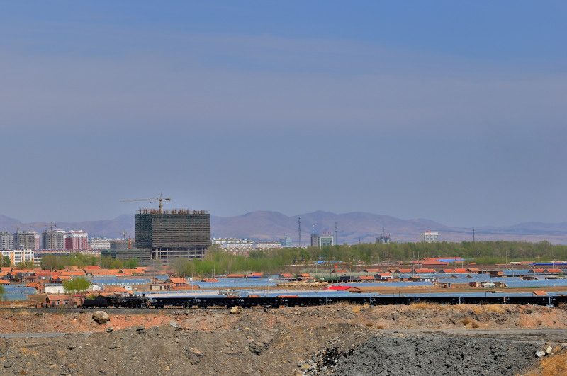 撮影1日目です。炭鉱のズリ捨て線の丘から撮影です。平庄南駅に貨車を取りに行くようです。