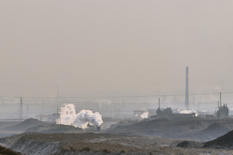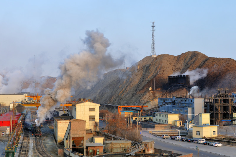 背景は白銀の精錬所です。排煙で霞んでいます。