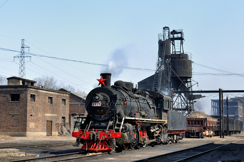 国鉄線との石炭貨車のやりとりはDL牽引で行います。中国国鉄へのSL乗り入れは禁止されてい