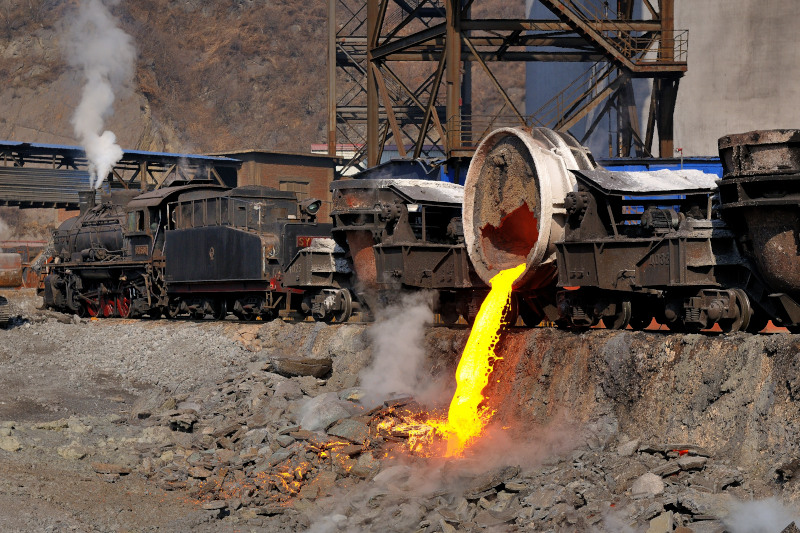 1.高炉から溶融高炉スラグを列車で運ぶ