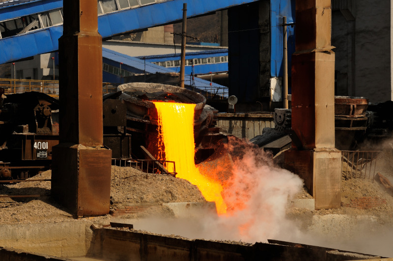 溶融銑鉄を取り鍋に受けています。温度は1500℃位か。SLは溶融銑鉄を高炉から製鋼工場までの