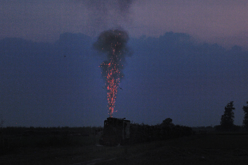 夜に畑の野焼きの真っ最中でした。昼間には結構見かける作業ですが、夜見るのは初めてです。