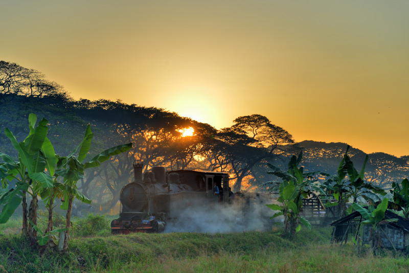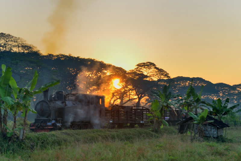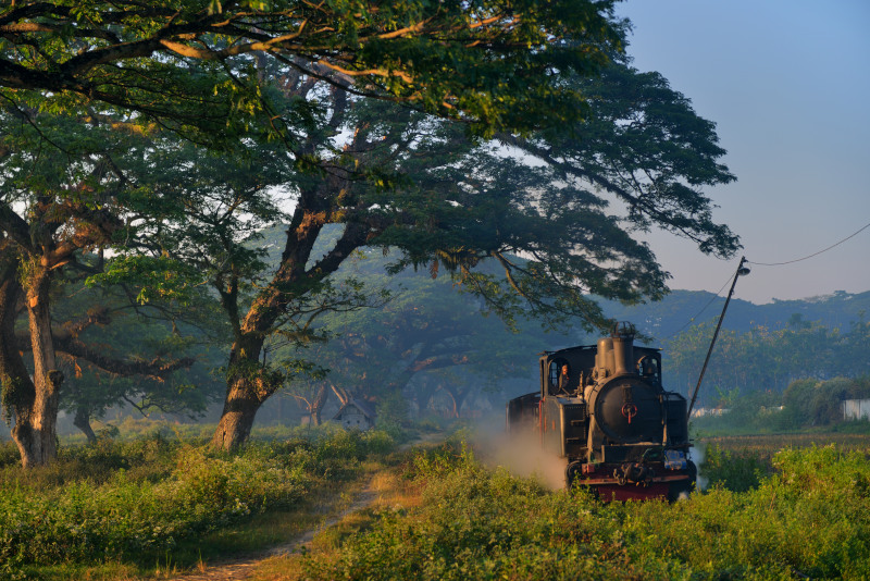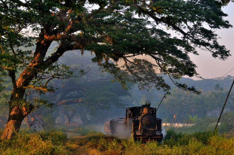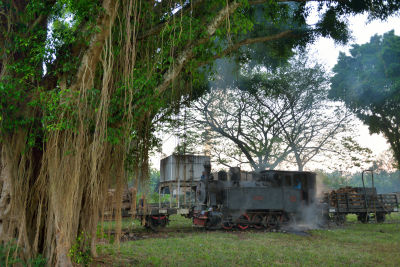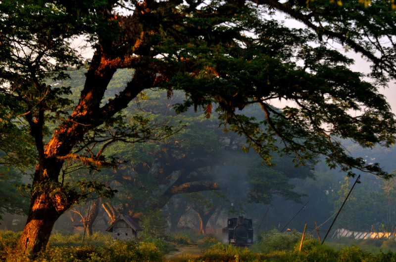 朝のチェプ森林鉄道駅です。ここには数両のSLが動態保存されています。