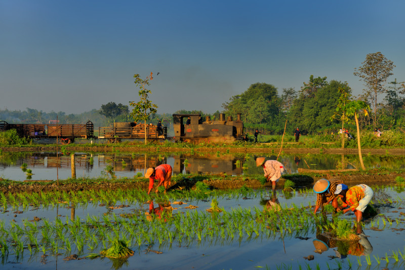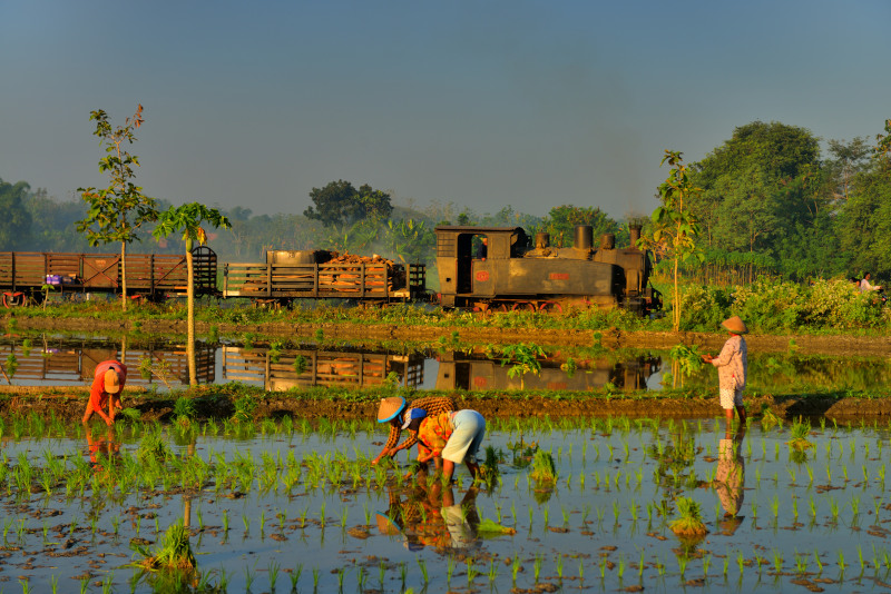 Cepu森林鉄道はチーク材保護のため伐採禁止で、運休中です。チーク材を植林中で、鉄道は