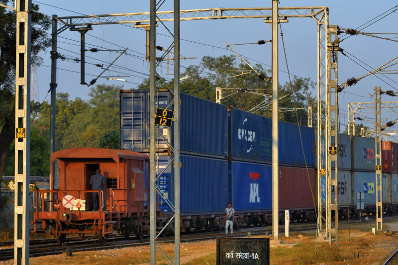 コンテナ2段積みの列車です。この機関車はDLですが、架線が張られています。通常の電化