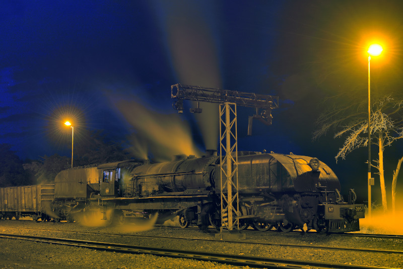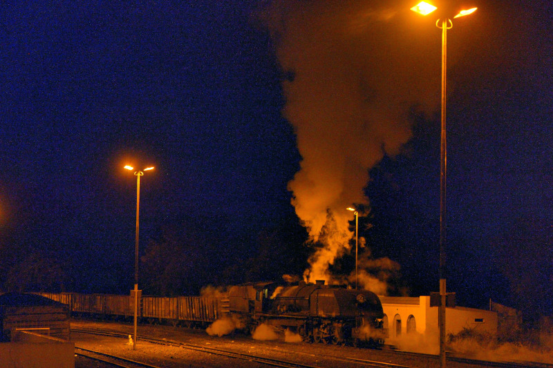 の貨物列車を撮影、午後には、ザンビアの512号機(ガーラット14A、1C1+1C1)の客車列車