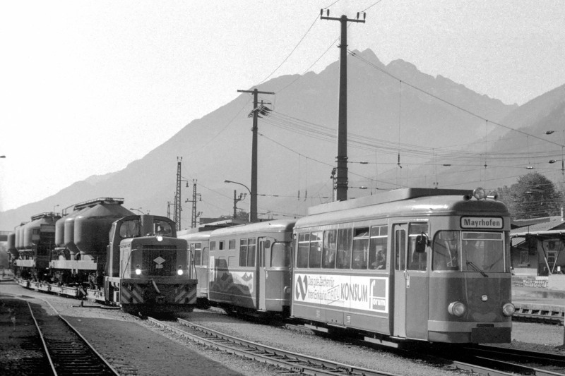 1983年9月訪問。オーストリア国鉄Jenbach駅の南側に始発駅があります。ゲージは760mm。