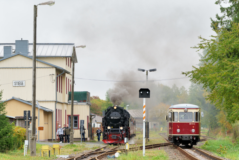 Eisfelder Talmuhle付近、左がQuedlinburg方面行き、右がDrei Annen Hohneの同時発車