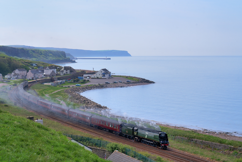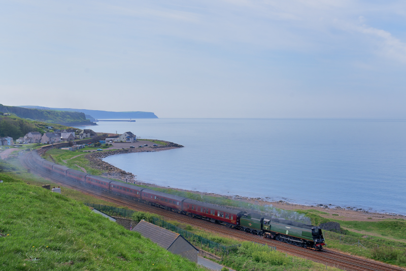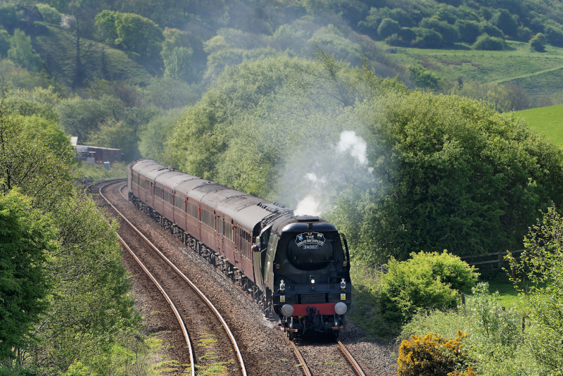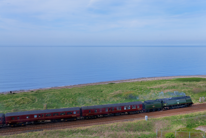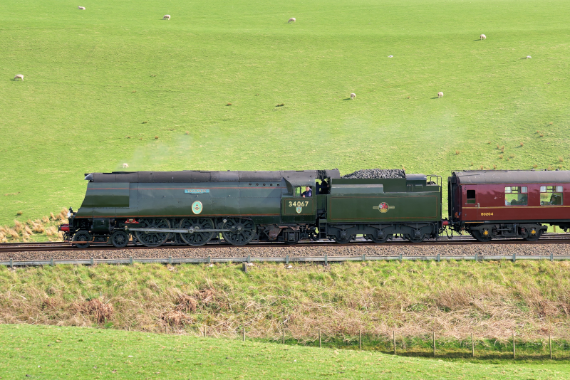 一回目、この日の機関車はBattle of Britain(34067)。かなり独特なスタイルだ。