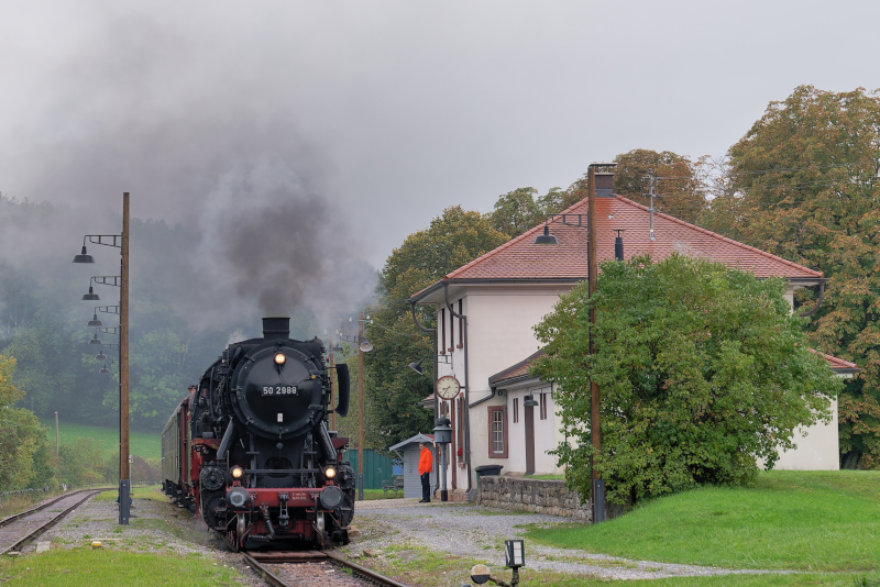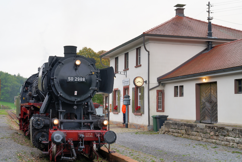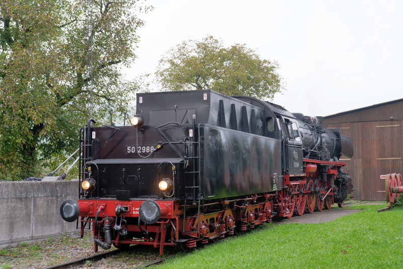 Futzen、機関庫の前で準備中。この日の牽引機は50 2988。他に86 333のタンク機が