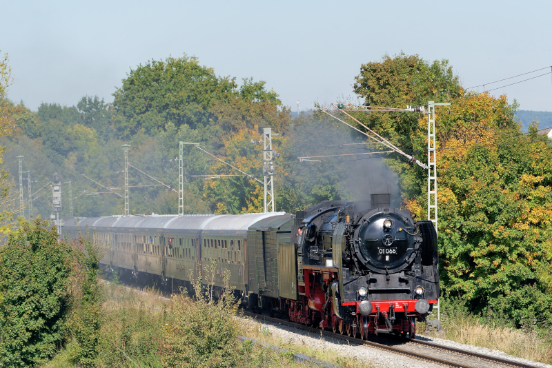 で01 066と01 180の重連列車を1往復。NordlingenーDonauwörth間の国鉄線で01 066の列車と