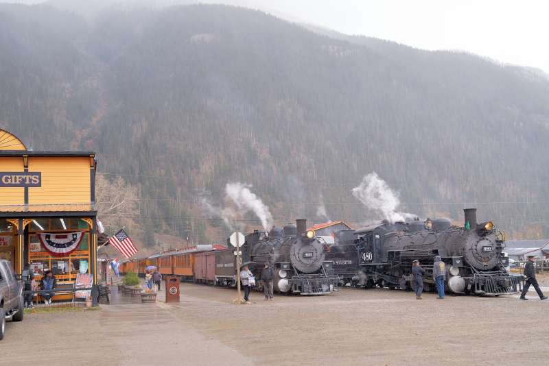 ター列車運転ツアーに参加しての撮影。2日目の観光列車もDurango駅9:00発車と続行で2本の列車が往
