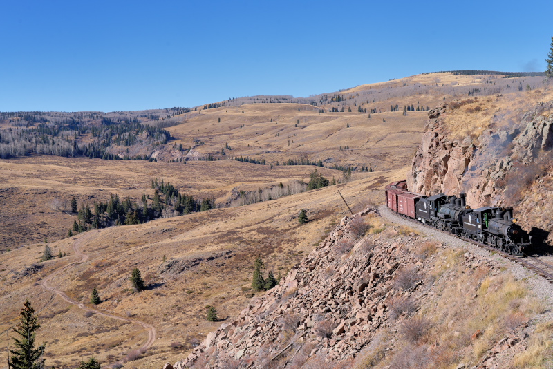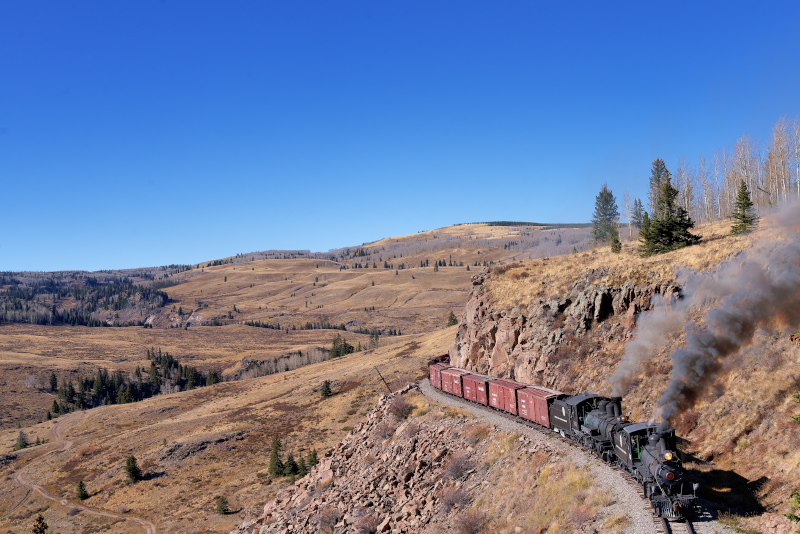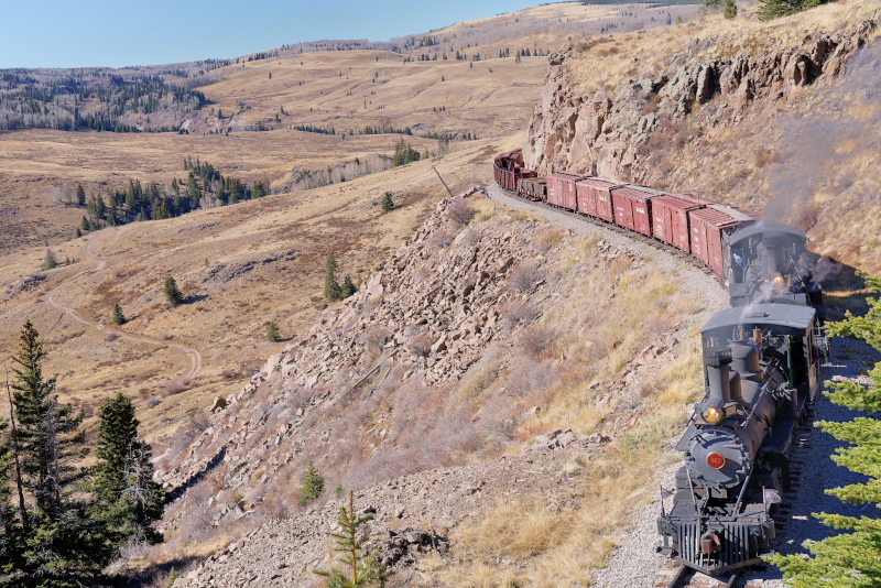 914mmゲージの鉄道だ。ロッキー山脈を横断するこの鉄道の最高地点はCumbres Pass峠(標高3055m)で